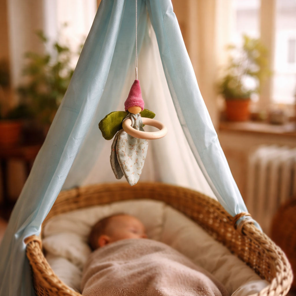 Nanchen dolls have been lovingly handmade and hand-painted since 1983 in north Hesse, Germany. A small group of 15 employees stitch each doll from high quality natural materials of Bioland virgin sheep's wool, organic cotton and plant-dyed silk. Each doll is hand stuffed, and the faces are individually hand-painted, giving each doll its own unique character.