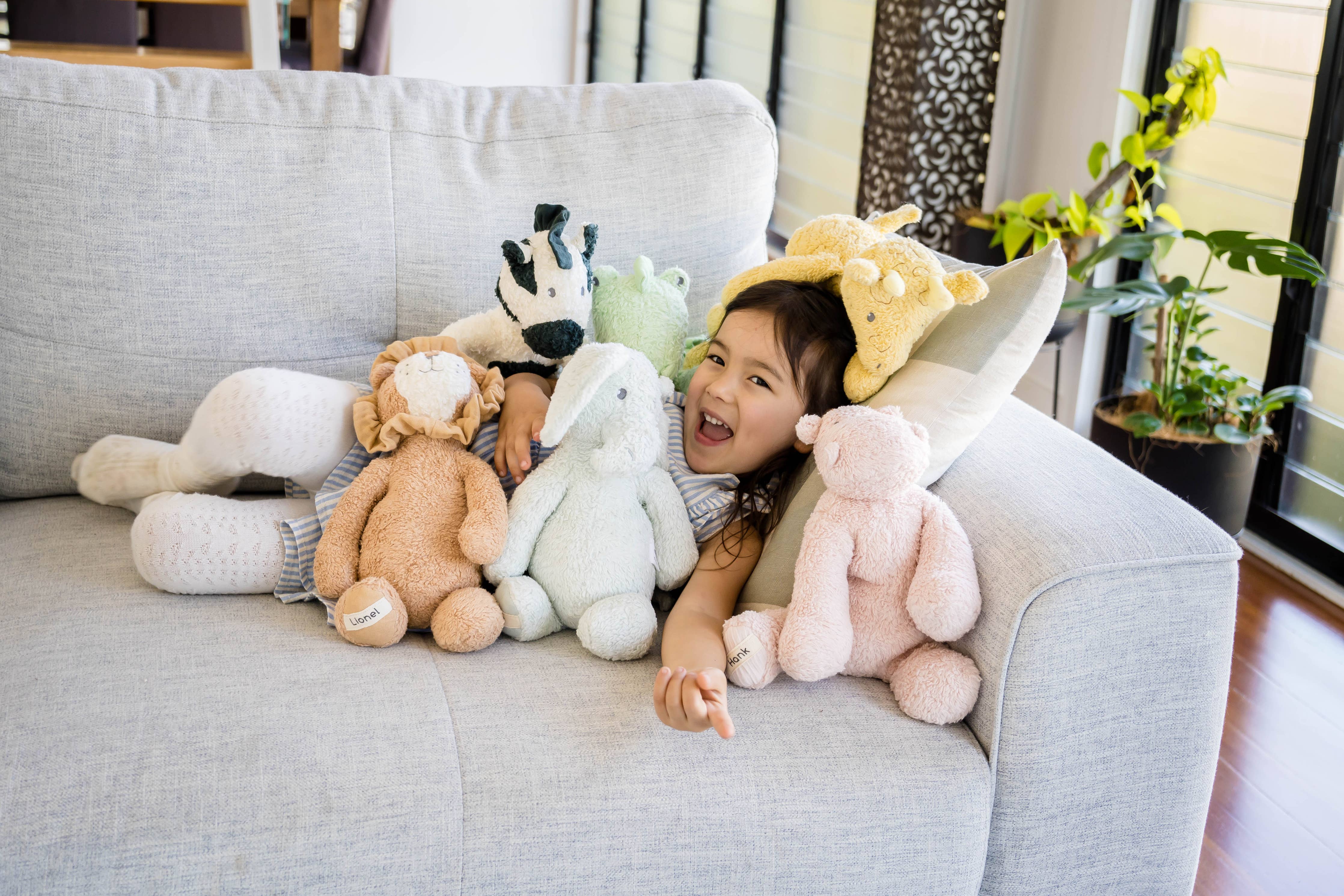 Clint the Crocodile is so excited to be coming to a special little one for loads of cuddling. Being made from soft organic fabric he is perfect for lots of hugs. Embroidered eyes.